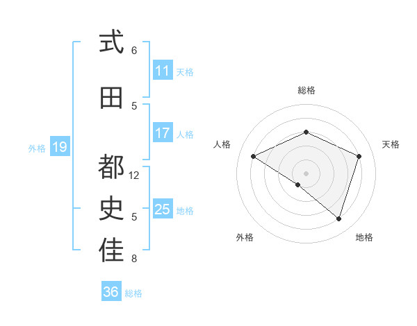 式田 都史佳さんを姓名の画数から五運を鑑定