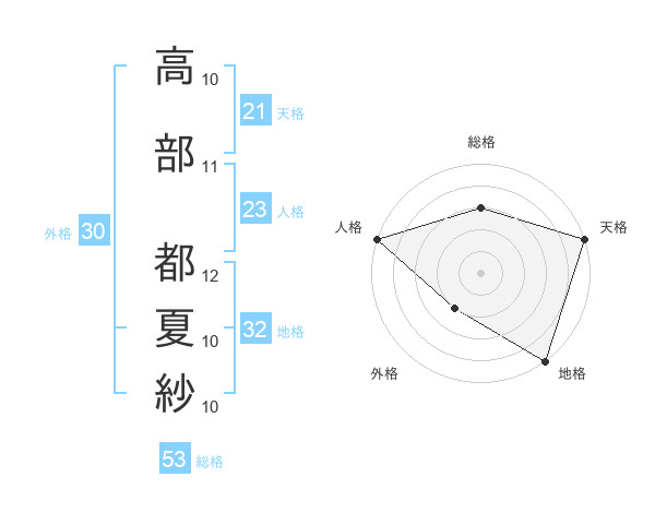 高部 都夏紗さんの総格は53画の3点!