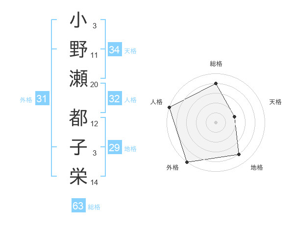 小野瀬 都子栄さんを姓名の画数から五運を鑑定