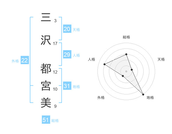 三沢 都宮美さんを姓名の画数から五運を鑑定