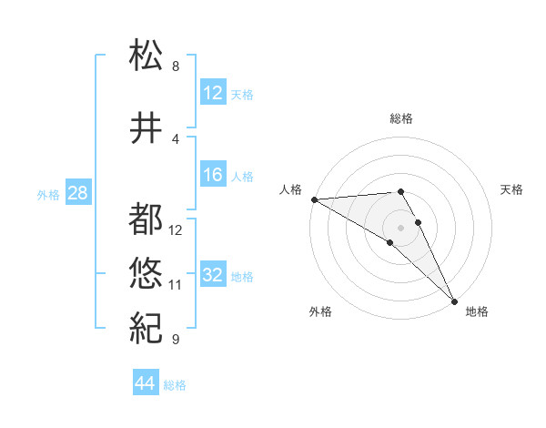 松井 都悠紀さんを姓名の画数から五運を鑑定