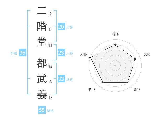 二階堂 都武義さんを姓名の画数から五運を鑑定