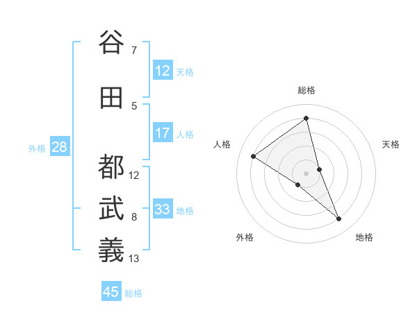 谷田 都武義さんを姓名の画数から五運を鑑定