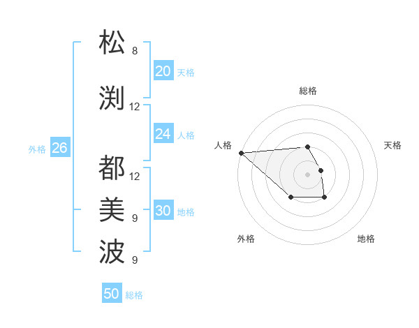 松渕 都美波さんの総格は50画の2点!