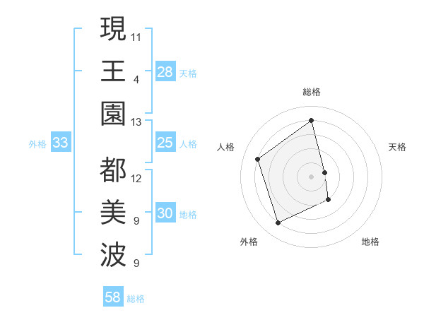 現王園 都美波さんを姓名の画数から五運を鑑定