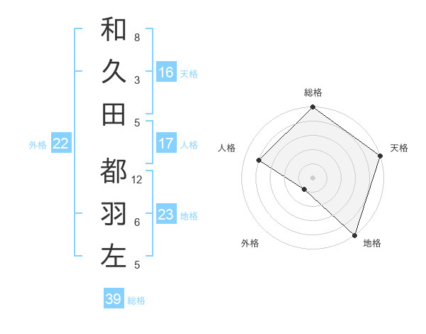 和久田 都羽左さんを姓名の画数から五運を鑑定