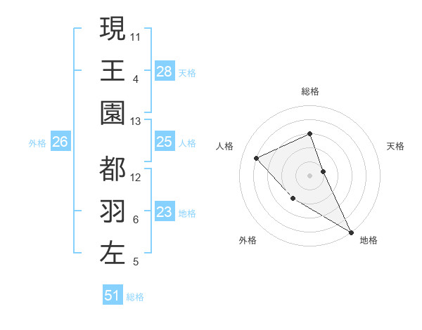 現王園 都羽左さんを姓名の画数から五運を鑑定