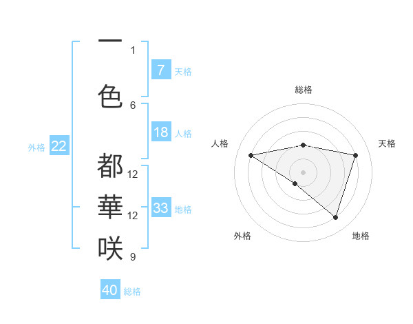 一色 都華咲さんの外格は22画の1点!
