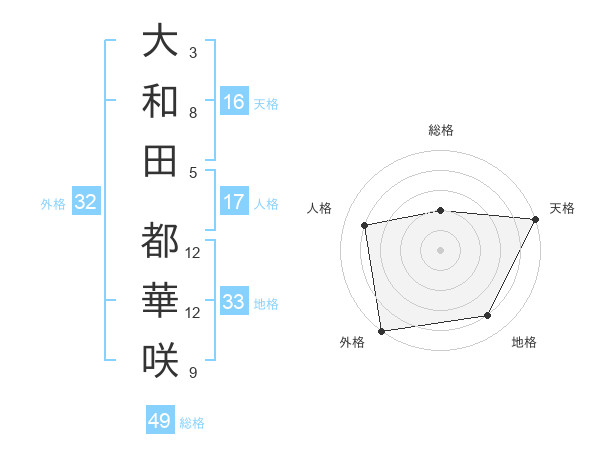 大和田 都華咲さんを姓名の画数から五運を鑑定