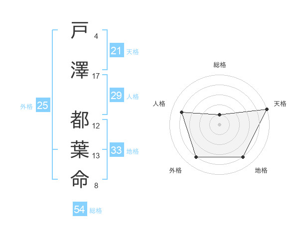 戸澤 都葉命さんの天格は21画の5点!