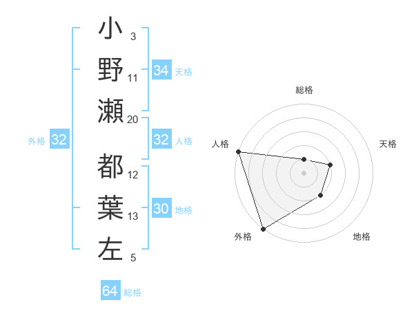小野瀬 都葉左さんを姓名の画数から五運を鑑定