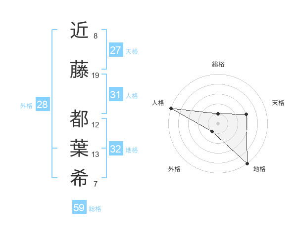 近藤 都葉希さんを姓名の画数から五運を鑑定