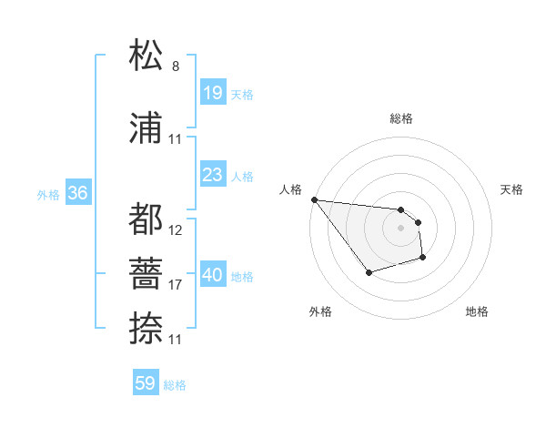 松浦 都薔捺さんの総格は59画の1点!