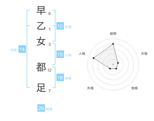 早乙女 都足さんの総格は29画の4点!