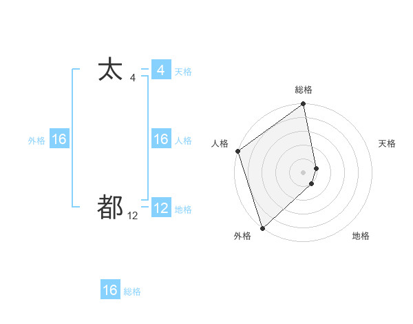 太 都さんの外格は16画の5点!