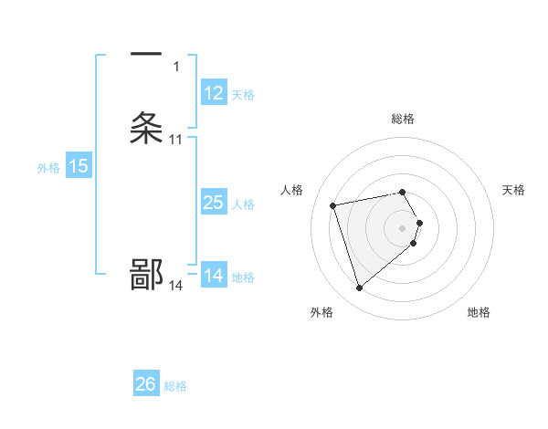 一条 鄙さんの外格は15画の4点!