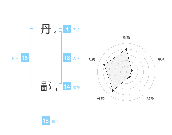 丹 鄙さんの外格は18画の4点!