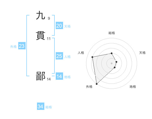 九貫 鄙さんの外格は23画の5点!