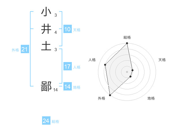 小井土 鄙さんの外格は21画の5点!