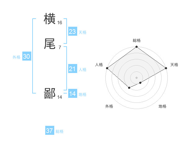 横尾 鄙さんを姓名の画数から五運を鑑定