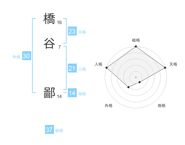 橋谷 鄙さんの総格は37画の5点!