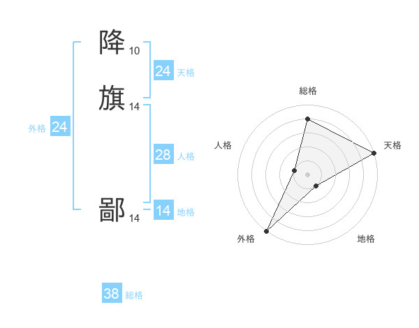 降旗 鄙さんを姓名の画数から五運を鑑定