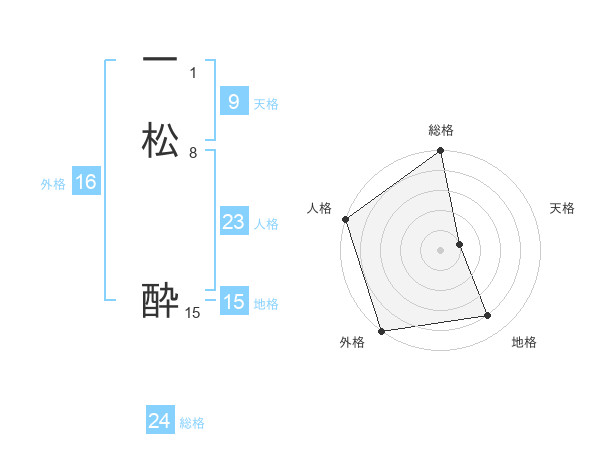 一松 酔さんの外格は16画の5点!