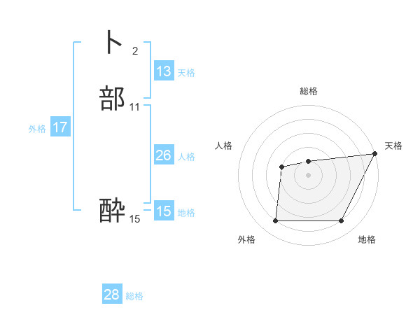 卜部 酔さんの天格は13画の5点!