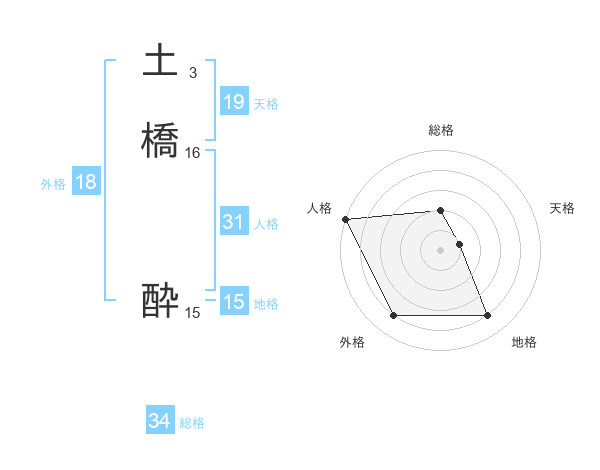 土橋 酔さんの総格は34画の2点!
