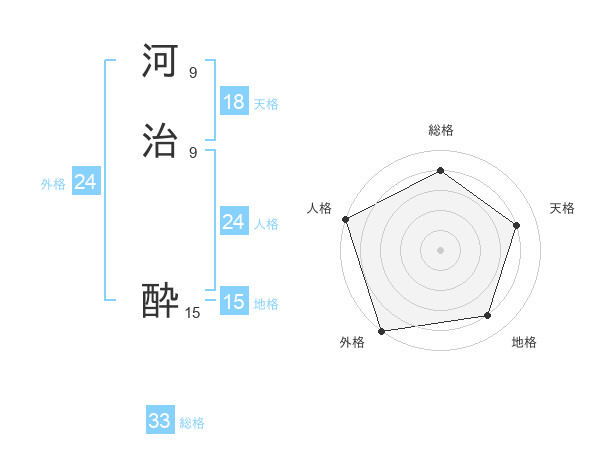 河治 酔さんの総格は33画の4点!