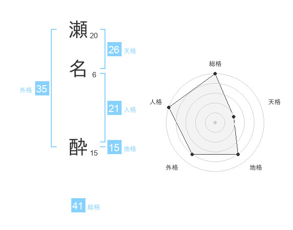 瀬名 酔さんの外格は35画の4点!