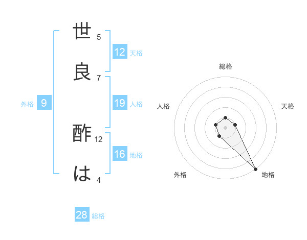 世良 酢はさんの総格は28画の1点!