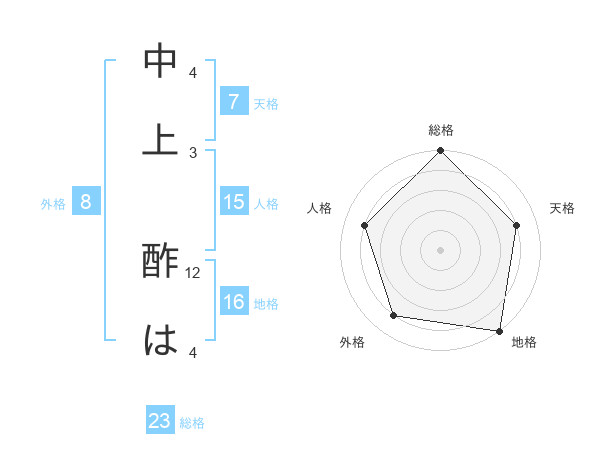 中上 酢はさんの総格は23画の5点!