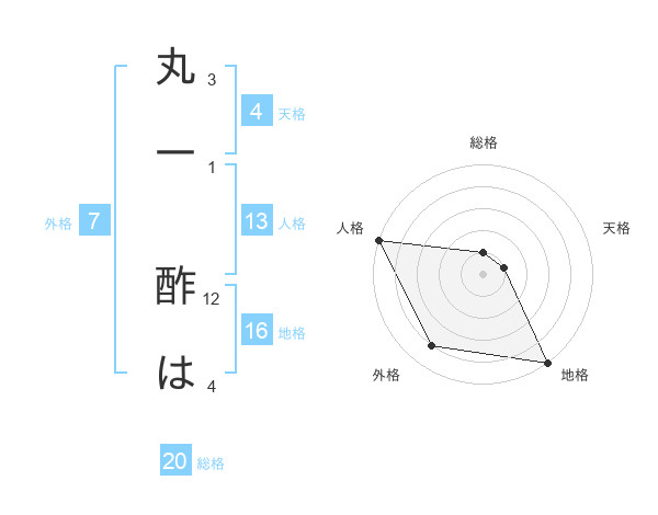 丸一 酢はさんを姓名の画数から五運を鑑定