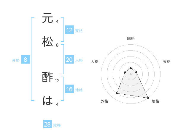 元松 酢はさんの総格は28画の1点!