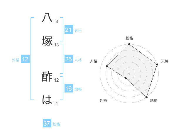 八塚 酢はさんの総格は37画の5点!