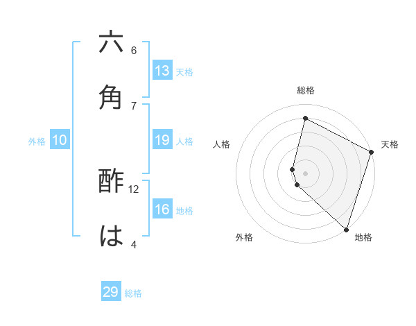 六角 酢はさんの総格は29画の4点!