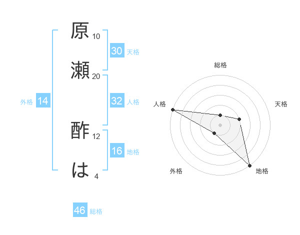 原瀬 酢はさんを姓名の画数から五運を鑑定