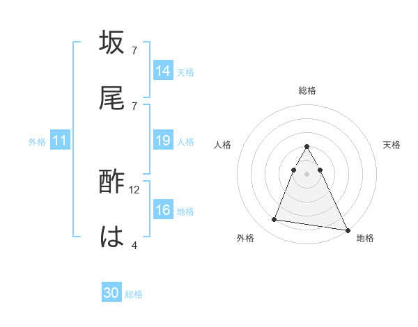 坂尾 酢はさんの総格は30画の2点!