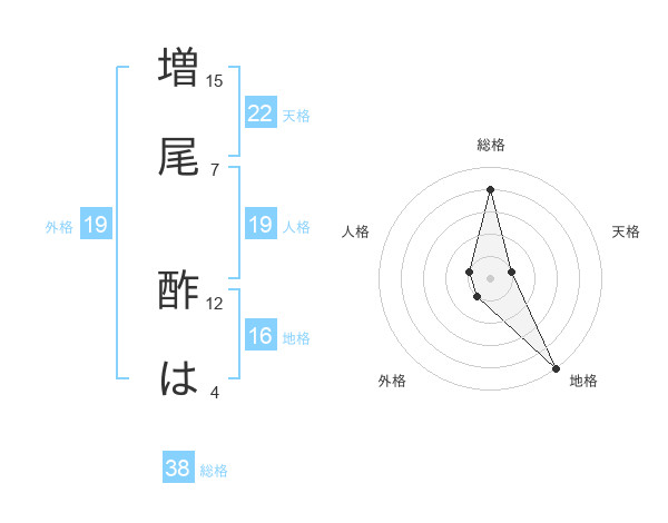 増尾 酢はさんの総格は38画の4点!