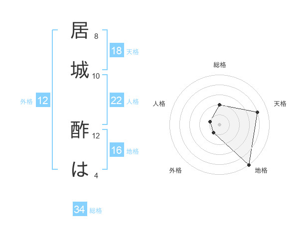 居城 酢はさんの総格は34画の2点!