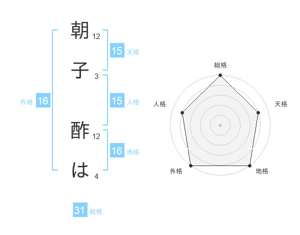 朝子 酢はさんの外格は16画の5点!