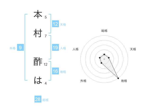 本村 酢はさんの天格は12画の1点!