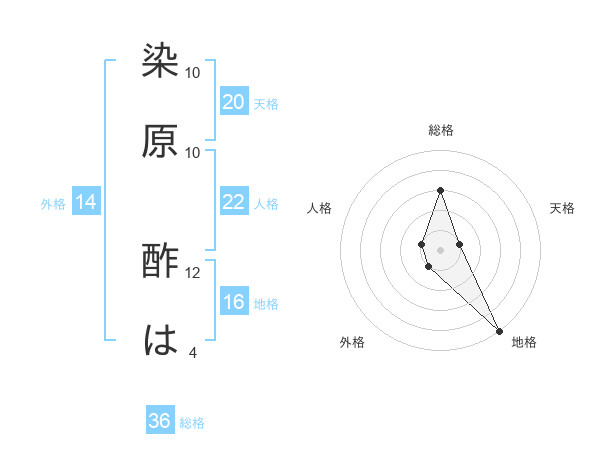 染原 酢はさんの天格は20画の1点!