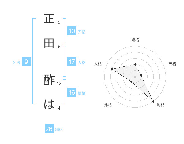 正田 酢はさんの総格は26画の2点!