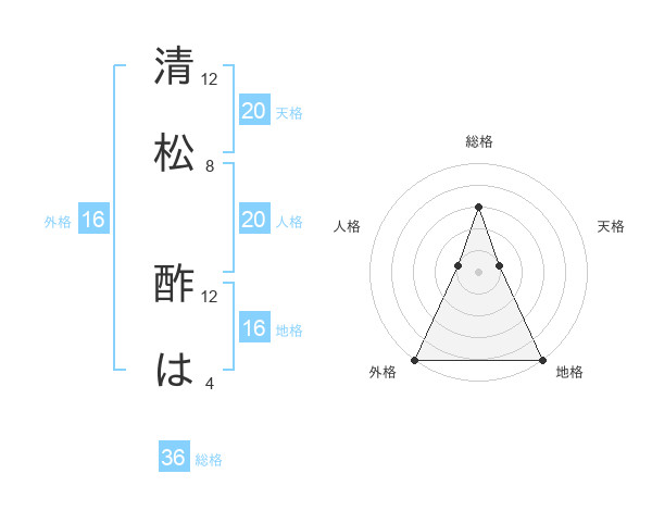 清松 酢はさんの外格は16画の5点!
