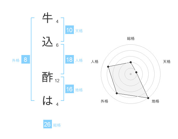 牛込 酢はさんを姓名の画数から五運を鑑定