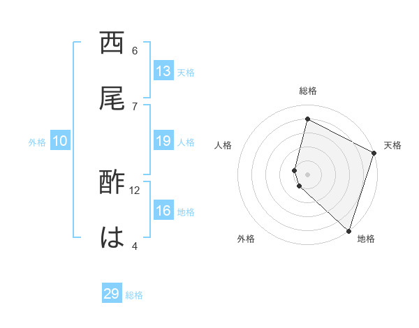 西尾 酢はさんを姓名の画数から五運を鑑定
