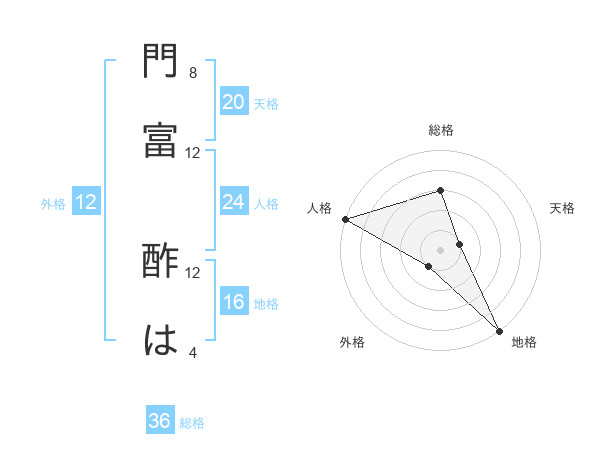 門富 酢はさんの総格は36画の3点!