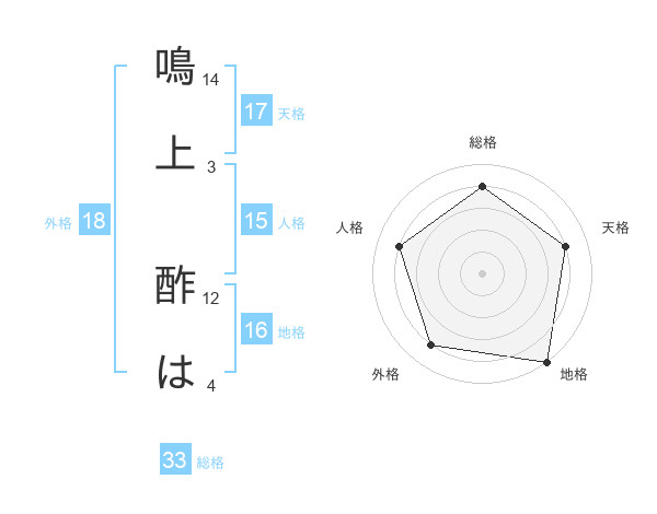 鳴上 酢はさんの天格は17画の4点!